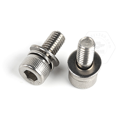 • 产品描述:DIN912 内六角圆柱头滚花带平弹垫组合螺钉,是组合螺钉的一种,又称为内六角圆柱头组合件、内六角杯头连接副、内六角杯头三组合螺丝、圆柱头自带平弹垫螺钉。DIN912 内六角圆柱头滚花带平弹垫组合螺钉,由内六角圆柱头螺钉、平垫圈和弹垫先组合后,再搓丝,形成一个组合件,组合好后垫圈能自由转动且不会脱落。组合件使用方便,不用再另配平垫、弹垫,大大提高生产组装效率。DIN912 内六角圆柱头滚花带平弹垫